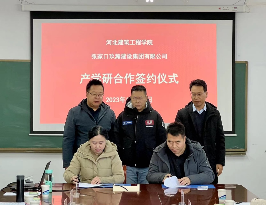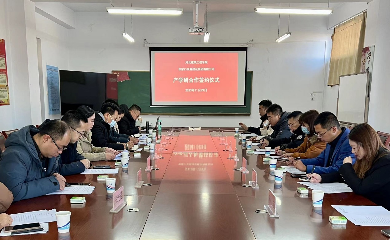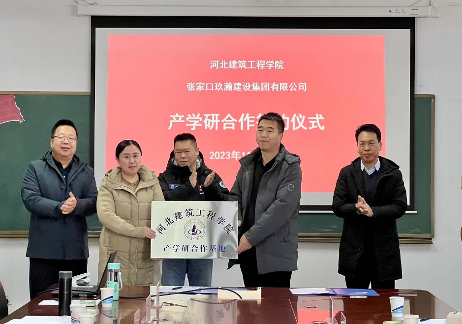 11月29日上午,db真人体育官网与玖瀚建设集团有限公司进行了校企产学研合作交流,并举行产学研合作签约及授牌仪式。参加仪式的有张家口市桥西区教育体育和科学技术局副局长冀红斌、张家口玖瀚建设集团有限公司总经理周澄文、副总经理张智彪、DB视讯科研处处长贾玉贵、db真人体育官网党委书记于江利、经理常青、部分教师及企业员工代表,会议由于江利书记主持。