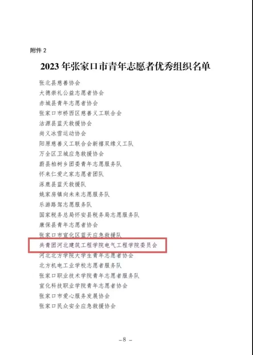 近日,由共青团张家口市委、张家口市民政局、张家口市文明办下发了《关于选树2023年张家口市青年志愿者优秀个人和优秀组织的通报》,db真人体育官网团委在此次评选中荣获“张家口市青年志愿者优秀组织”称号。