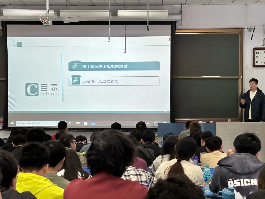 为促进产学研深度融合,搭建校企知识共享平台,推动理论教学与行业实践有机衔接,提升师生对电网工程管理前沿动态的认知,2025年4月25日下午3点,db真人体育官网特邀国网张家口市万全区供电公司高级工程师宋星乐,在明德楼110教室作“电网工程全过程管理”专题学术报告。