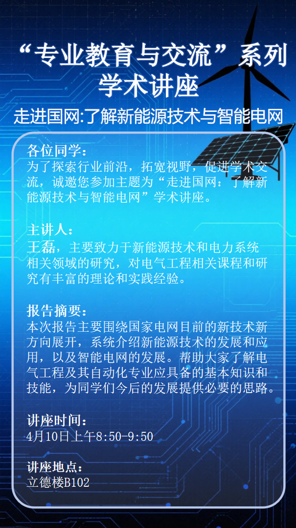 db真人体育官网“专业教育与交流”系列学术讲座第五讲预告:《走进国网:了解新能源技术与智能电网》