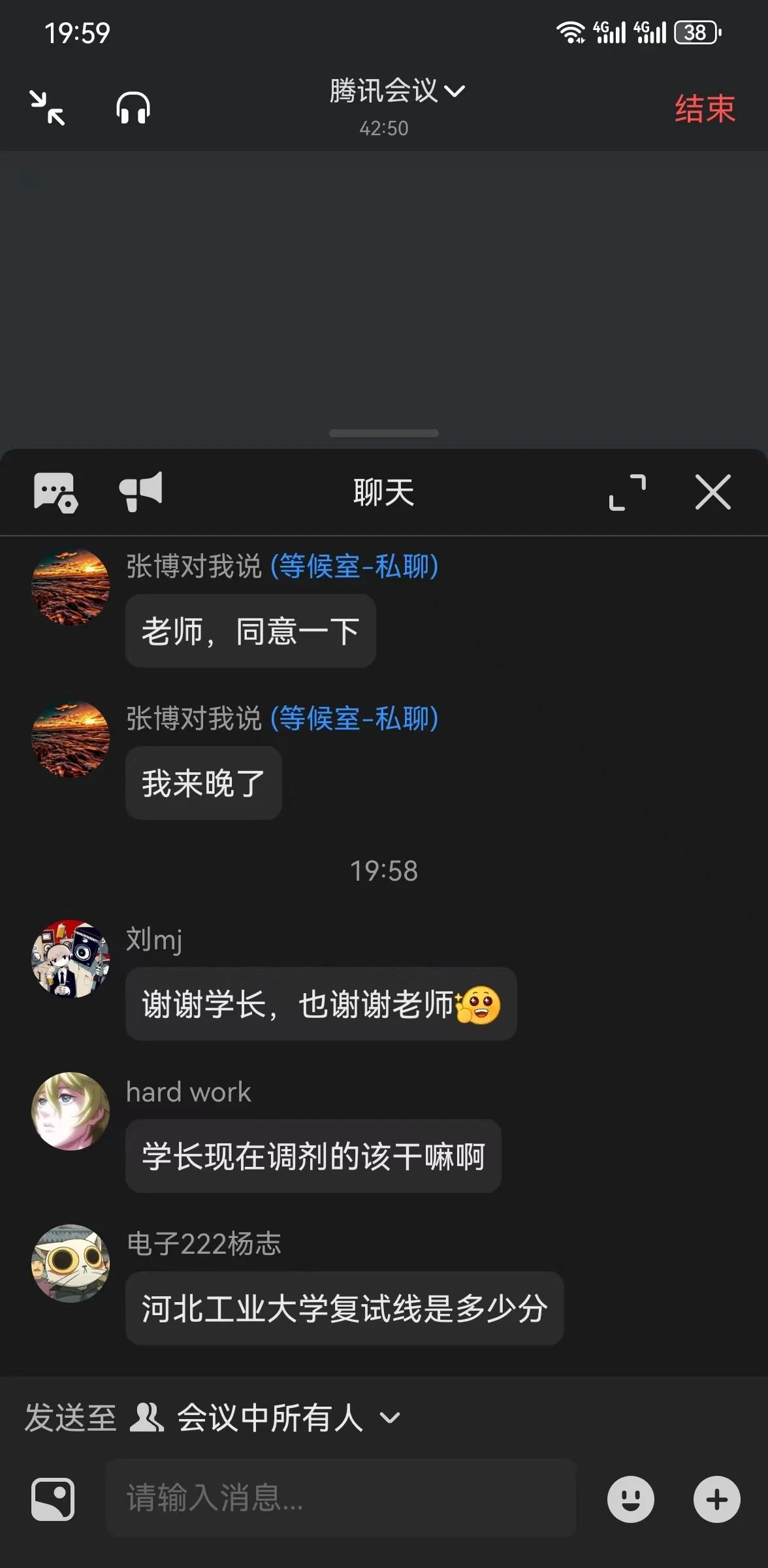 为全面提升学子考研竞争力,助力学子全面备战考研,2025年3月11日和3月12日,db真人体育官网通过腾讯会议,线上举办了“研途漫漫,与你同行——考研经验交流会”。本次交流会特邀优秀员工河北工业大学在读研究生王姜川、燕山大学在读研究生张全乐、东北电力大学在读研究生韩一鸣、华北电力大学在读研究生刁若丹、石家庄铁道大学在读研究生张书琦作为主讲嘉宾,为公司学子提供全方位的考研指导。