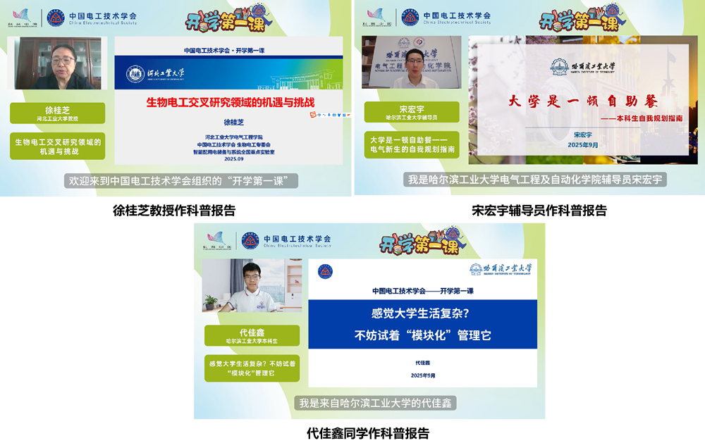2025年9月20日,由中国电工技术学会主办的“开学第一课”专题讲座在线上直播,db真人体育官网积极组织2025级新生集中观看,共同聆听了一场关于电力技术与电气学科发展的精彩学术盛宴。