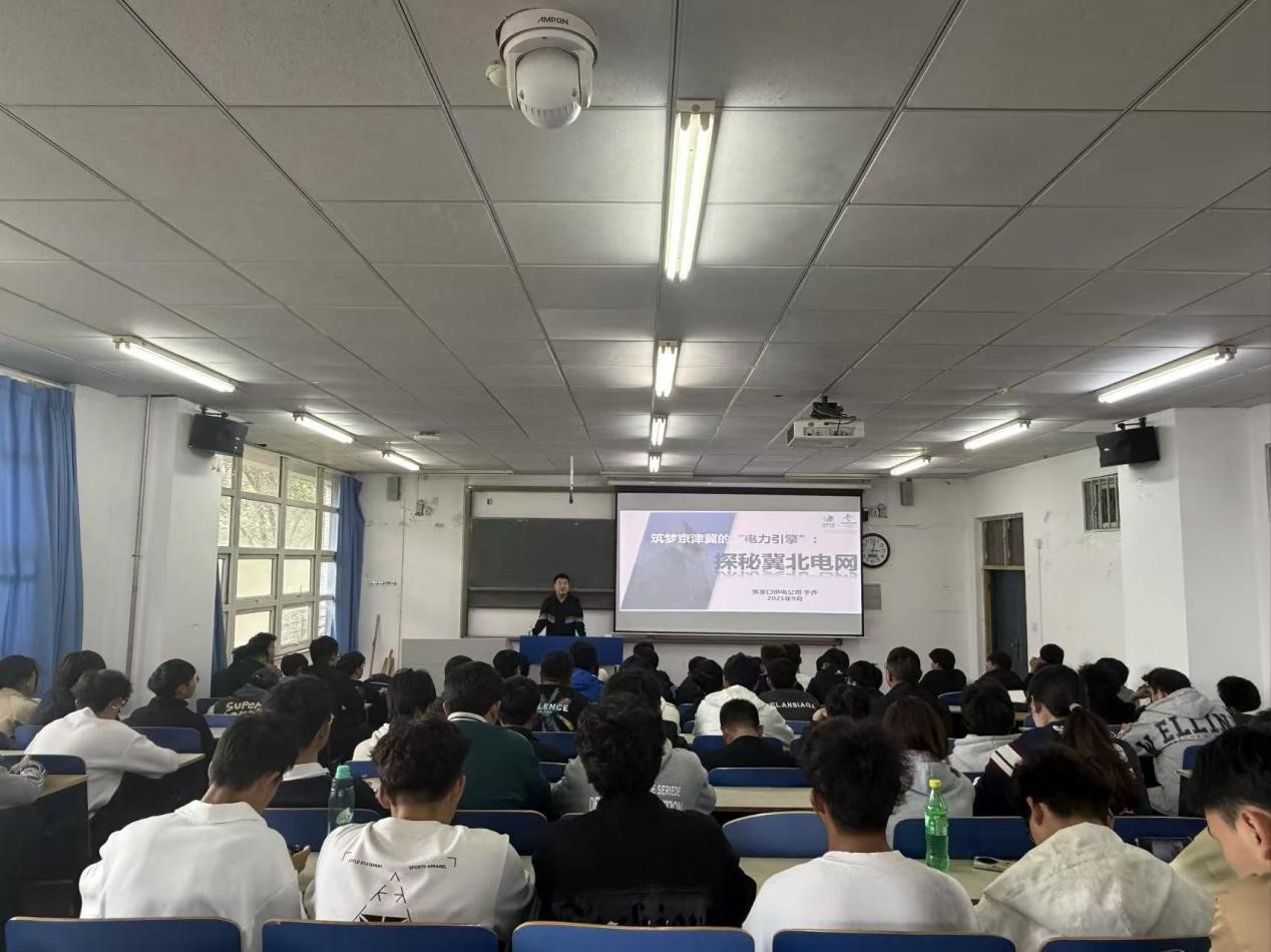 主讲人开门见山地指出国网冀北电力有限公司的概况,其核心定位可概括为“一保两服务”:即保障首都供电安全,服务冀北地区经济社会发展,服务国家新能源发展战略。主讲人从三大核心维度进行公司介绍,包括翔实的数据、丰富的案例和公司的日常工作重点,又介绍了公司的奖惩制度以及未来发展前景,让同学们更加了解电力公司的工作模式。